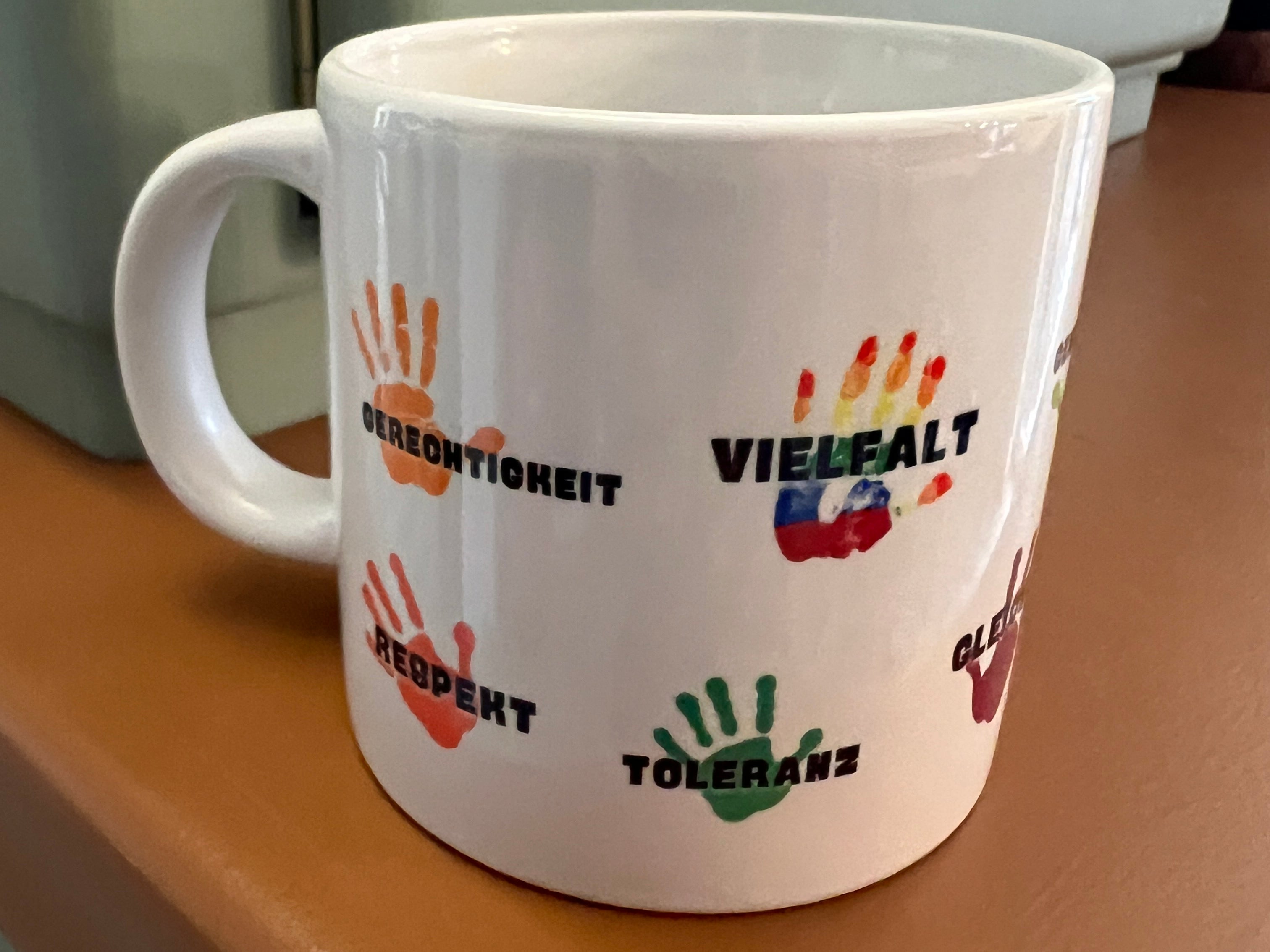 Diese Tasse ist für Kakao, Tee und ehrliche Werte gemacht.