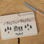 Personalisiertes Brettchen mit integriertem Messer – Der perfekte Begleiter für Camper im Wald!