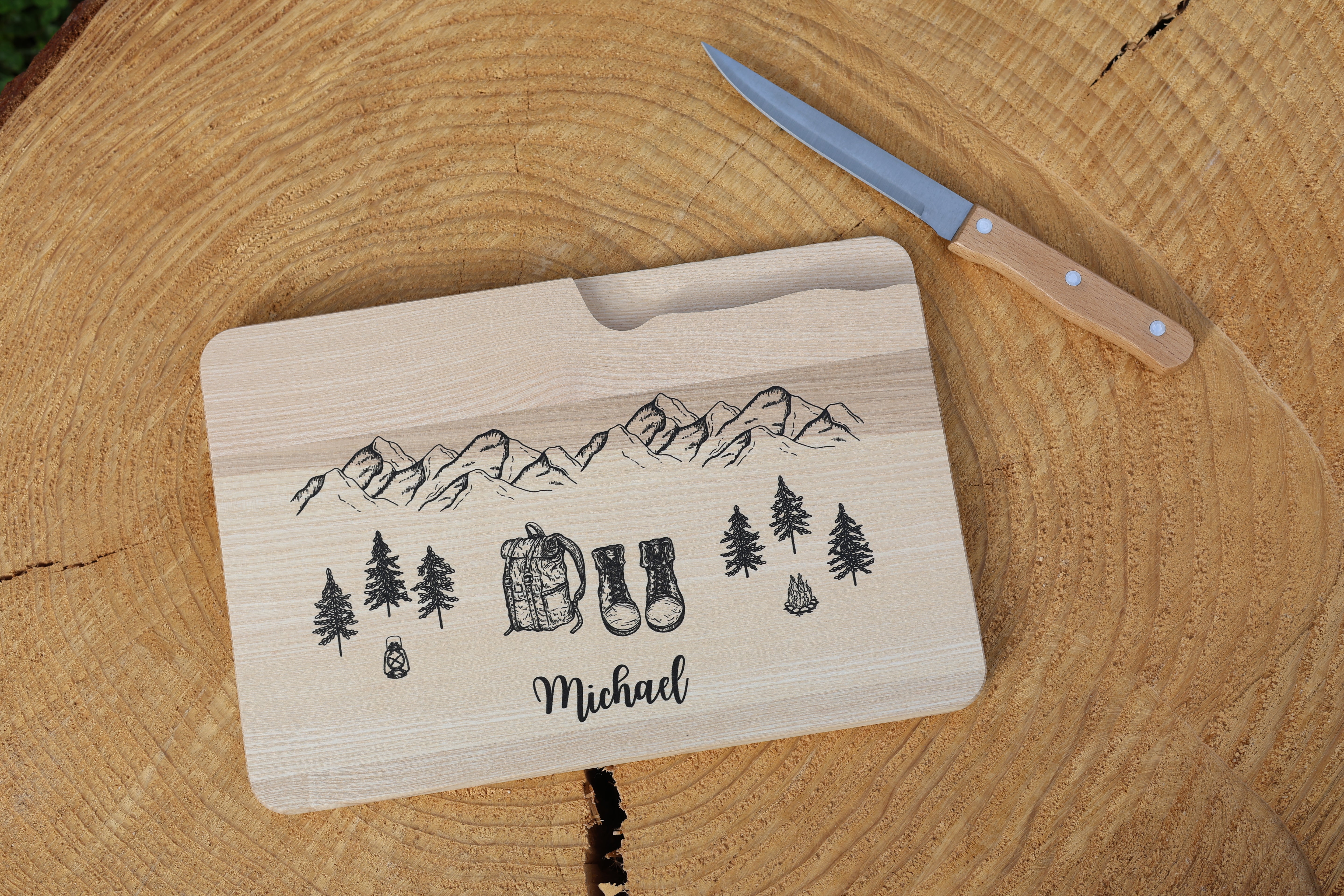 Ob beim Frühstück vor deinem Zelt oder beim Kochen in der Natur – mit diesem personalisierten Brettchen hast du Funktionalität und Stil immer dabei.