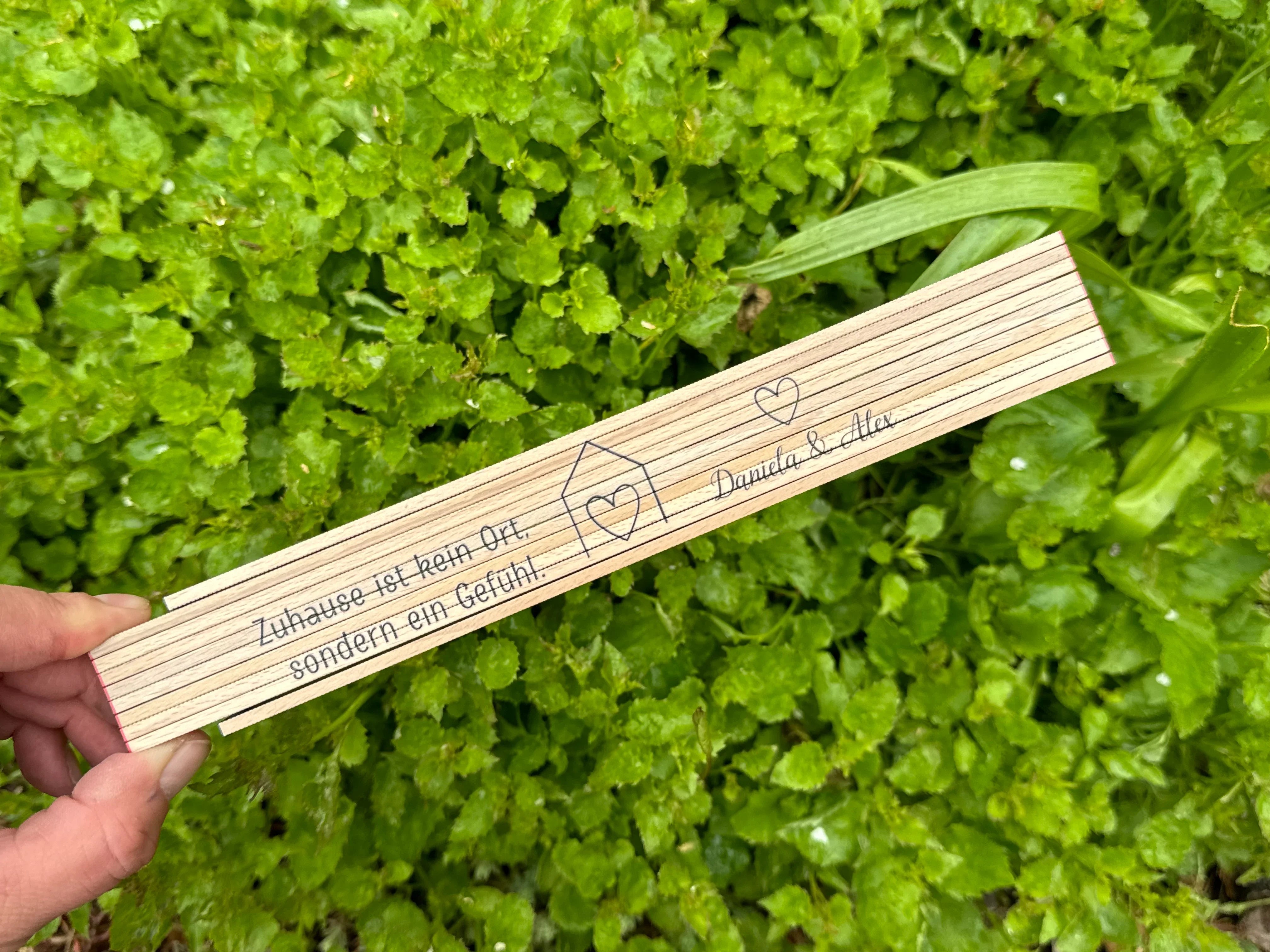 Personalisierter Zollstock als perfektes Geschenk zum Hausbau oder Einzug in eine neue Wohnung.